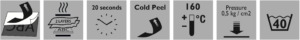 The application of the product is simple. The front of the Highcrest emblem is protected by the double textile layer of the garment during sealing. Using a heat seal press the process takes 20 seconds at 160 °C. Washing can be done up to 40 °C.