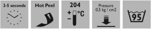 The transfer has hot peel properties which means that the paper covering the transfer has to be removed immediately after the machine opens.